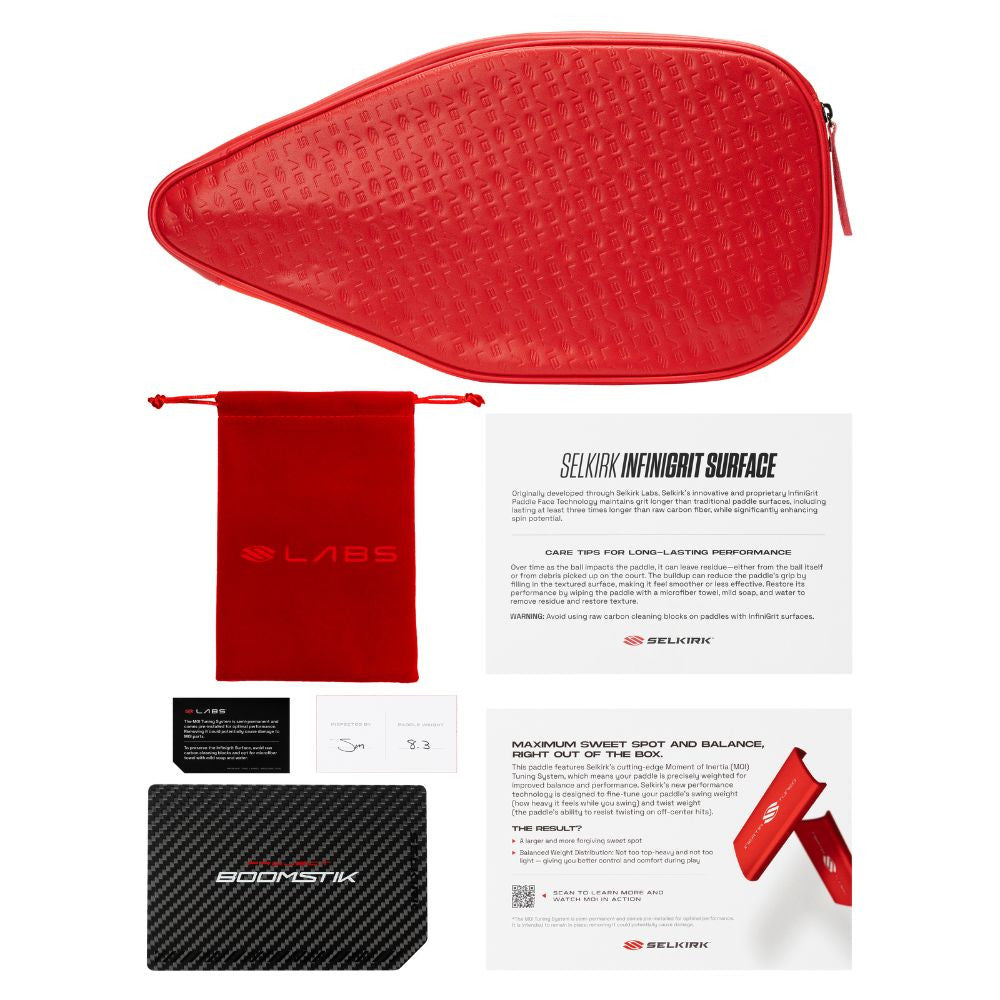 With Selkirk’s MOI Tuning System, the paddle comes pre-weighted for optimal balance and forgiveness right out of the box. Weight is distributed along the perimeter to resist twisting on off-center contact, giving us confidence to counter hard shots and keep the ball in play. The widebody shape adds face area for a more consistent response, whether we are blocking at the kitchen line or punishing a high dink. Assembled in the USA and approved for tournament play, the Project Boomstik Widebody is built for players who want power, stability, and a sweet spot that feels big from the first point to the last.