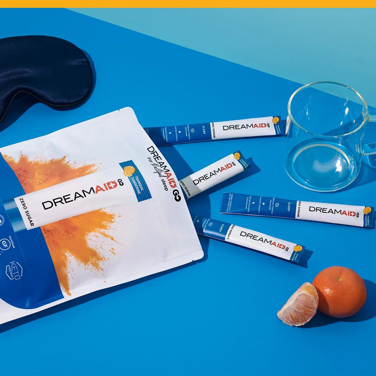 A soothing blend made with melatonin and chamomile, DREAMAID GO is a naturally sweetened, zero sugar way to unwind and relax before calling it a night. Just add water and enjoy either hot or cold.